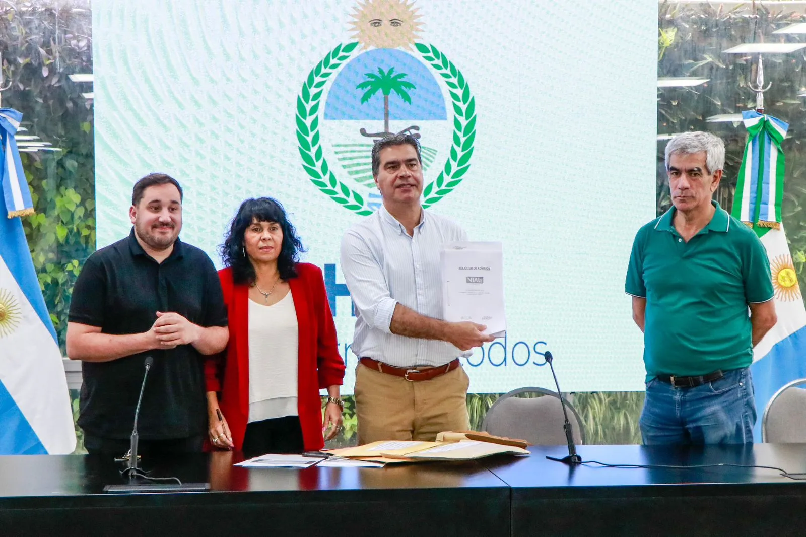 Durante el acto, realizado en el salón Obligado de Casa de Gobierno, estuvieron presentes además el ministro de Ministro de Planificación, Economía e Infraestructura, Santiago Pérez Pons, y el Administrador de Vialidad Provincial, Hugo Varela.