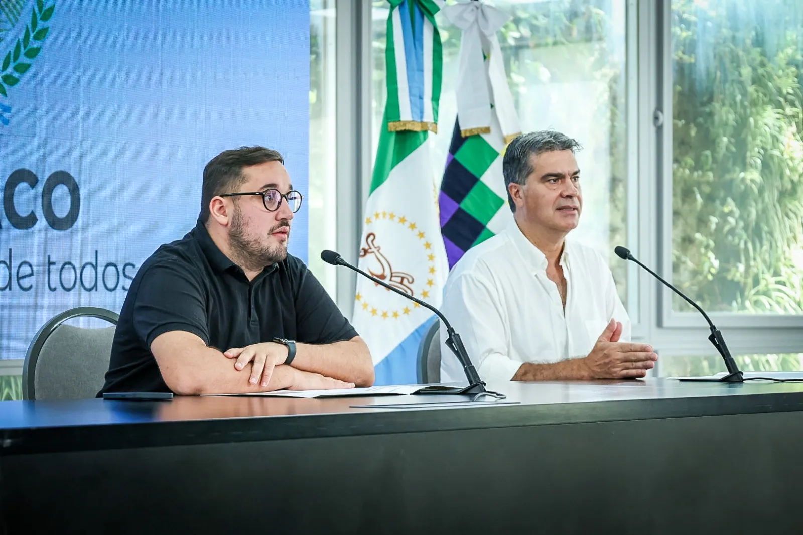 El gobernador Jorge Capitanich junto al ministro de Planificación, Economía e Infraestructura Santiago Perez Pons anunciaron este sábado un nuevo paquete económico, que incluye un adelanto del 12% de la pauta salarial (prevista originalmente para octubre), y alcanza a las y los trabajadores activos y jubilados. También anunciaron incrementos para las becas provinciales con contraprestación laboral (Más Inclusión, Instituto del Deporte, Conveniados del Instituto de Cultura y Servicio y Mantenimiento escolar).