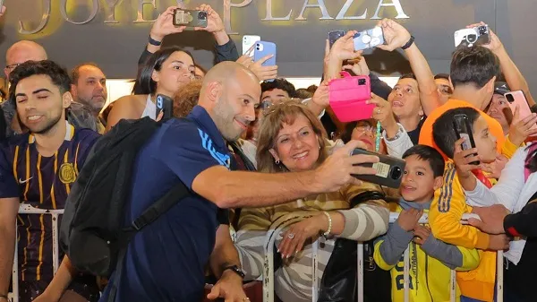 Javier “El Jefecito” Mascherano accedió a tomarse infinidad de “selfies” con los hinchas apostados en el lugar, firmando simultáneamente buzos, remeras y banderas argentinas, mientras que los jugadores más solicitados fueron Matías Soulé, Valentín Barco, Mateo Tanlongo y el capitán Agustín Giay.