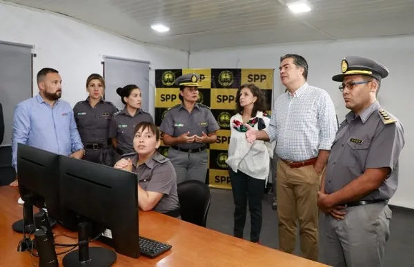 Capitanich recorrió la sala de monitoreo de la Alcaidía y dejó habilitado el sistema de videovigilancia que tuvo una inversión cercana a los 30 millones de pesos y consiste en 64 cámaras, dos monitores, cuatro smart tv, un cpu con software, e instalación de fibra óptica en todo el establecimiento. Esta sala tendrá acceso restringido únicamente al personal que desempeñará funciones en el lugar y que posean un permiso especial.