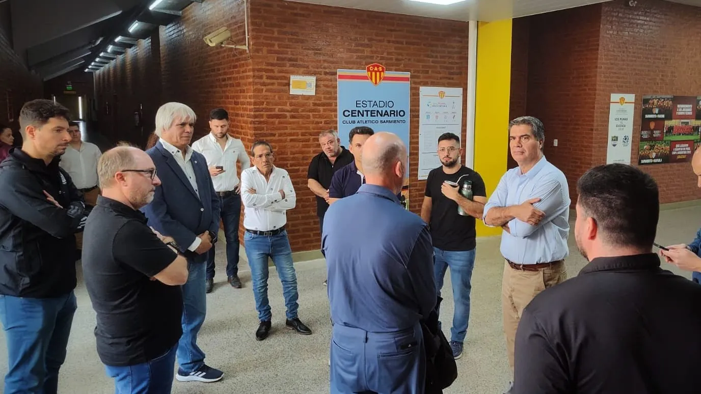 El gobernador Jorge Capitanich recibió este mediodía a la delegación de FIFA y AFA organizaciones encargadas de fiscalizar las sedes postuladas por Argentina para el Mundial Sub 20 de fútbol masculino. La comitiva internacional supervisó el estadio del Club Sarmiento, canchas de entrenamiento y hotelería con el objeto de evaluar la factibilidad de uso de las instalaciones.