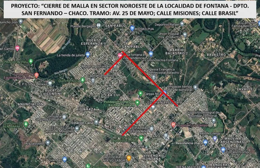 La Dirección de Planificación Vial de Vialidad Provincial del Chaco (DVP) comunica que, en el marco del proyecto “Cierre De Malla En Sector Noroeste de la localidad de Fontana – Dpto. San Fernando – Chaco. Tramo: Av. 25 De Mayo; Calle Misiones; Calle Brasil”, el viernes 1 de septiembre se realizará la Consulta Pública para la pavimentación, desagües pluviales, iluminación y parquizado de la avenida 25 de mayo y las calles Misiones y Brasil de Fontana.