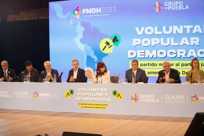 Junto a expresidentes y distintos dirigentes que integran el progresista Grupo de Puebla, la vicepresidenta realizó el discurso de cierre de la jornada “Voluntad popular y democracia. Del partido militar al partido judicial, las amenazas a la democracia”, donde opinó sobre distintos tópicos económicos, políticos e históricos.