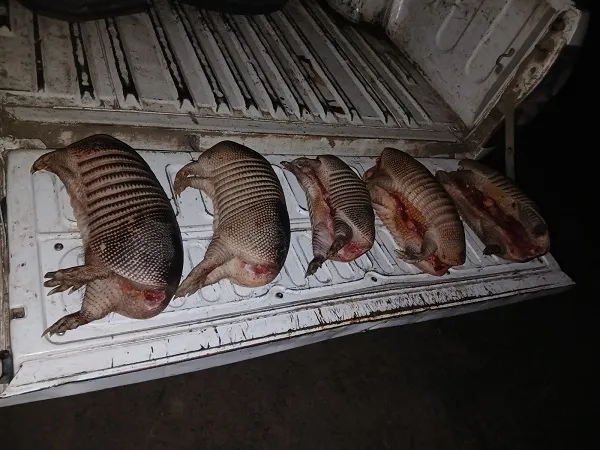 Al realizar la inspección de rutina sobre el rodado, los agentes hallaron una bolsa de polietileno que contenía en su interior cinco ejemplares de la especie Tatú Mulita (Dasypus hybridus) ya faenados. Al solicitarle los permisos de caza correspondientes y la habilitación expedida por los organismos pertinentes, el conductor manifestó no poseer ningún tipo de documentación.