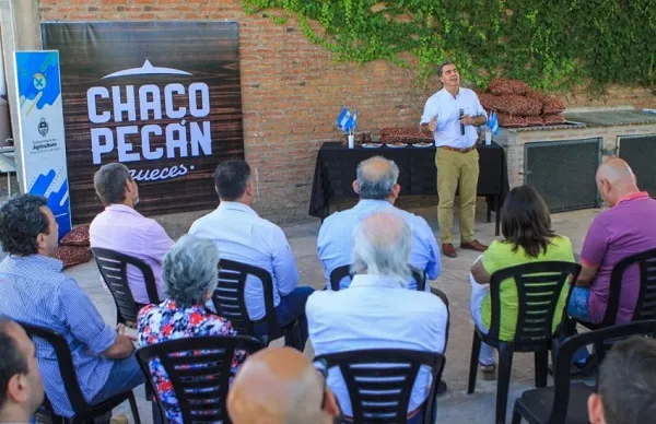 El gobernador Jorge Capitanich presentó, este miércoles en Colonia Popular, el programa Chaco Pecan con Ganadería Integrada cuyo objetivo es aumentar la implantación de ese tipo de nuez en la provincia. Para ello el Consejo Federal de Inversiones (CFI) dispone de $100 millones que serán dirigidos en créditos para diversificar la producción de productores con disponibilidad de 1 a 5 hectáreas para implantación del cultivo y acceso a una fuente de agua para instalación del riego.