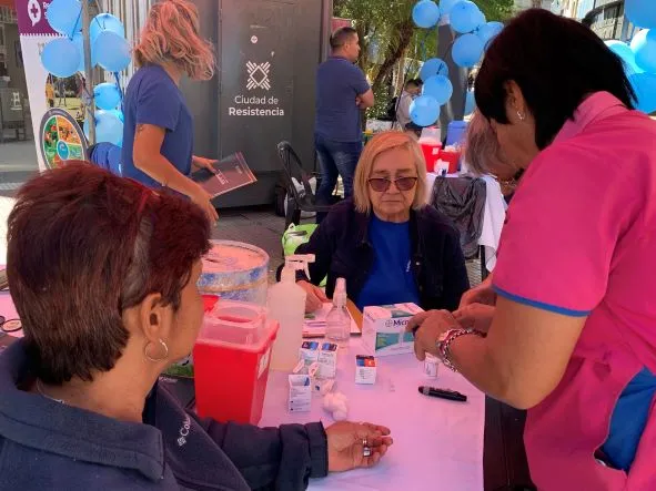 Para ello, se realizaron testeos gratuitos de azúcar para obtener diagnósticos a tiempo y luego ofrecer asesoramiento antes eventuales registros de índices de diabetes activa. Además, Resistencia complementó la actividad con una posta de vacunación y con un stand de alimentación saludable.