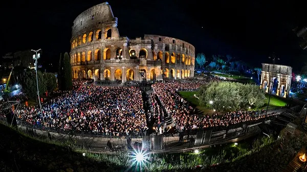 Debido “al intenso frío” de la noche romana, el pontífice de 86 años se unió desde su residencia de Casa Santa Marta “en oración” a las casi 20.000 personas que participaron de la celebración en la que se leyeron 14 reflexiones y pedidos por la paz.