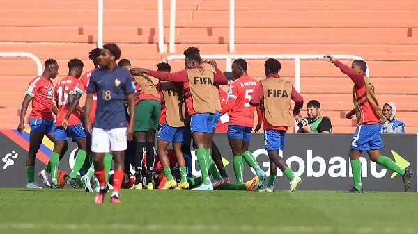 Gambia conquistó este jueves un gran triunfo ante Francia por 2 a 1 y pasó a liderar el Grupo F con dos partidos ganados sobre dos jugados, y asegurándose su pasaporte a los octavos de final, tras demostrar una amplia superioridad en el partido jugado en Mendoza.