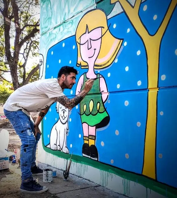 Este artista lleva más de una década de carrera. Su obra, que inicialmente era exhibida en formatos tradicionales, luego fue conquistando también espacios en el mundo digital. En su rica historia nunca había tenido la posibilidad de ser convocado por una institución del Estado para poder plasmar su arte en el espacio público.