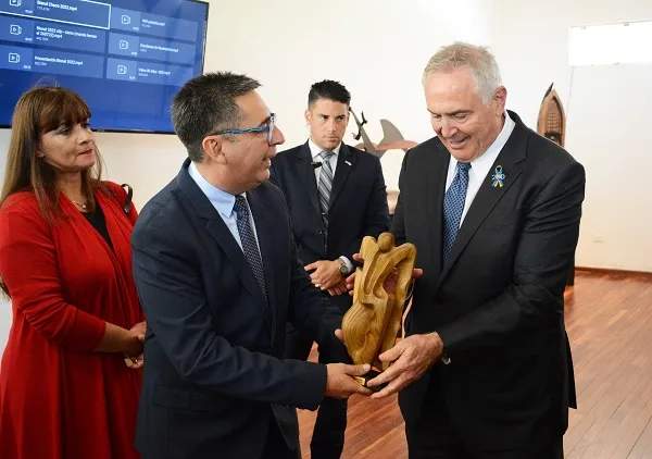 El diplomático visitó el Fogón de los Arrieros, el Museum del Domo del Centenario y las esculturas del predio mostrándose muy sorprendido por el patrimonio cultural y prometió regresar para la próxima Bienal.