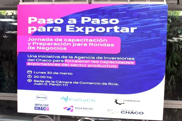 La Agencia de Inversiones del Chaco presentó este miércoles la “Jornada de Capacitación sobre Exportaciones y Ronda de Negocios”, una propuesta destinada a fortalecer el perfil exportador de emprendedores y empresas locales. La actividad se desarrollará el próximo lunes 30 de marzo, de manera gratuita, en la sede de la Federación Económica del Chaco (FECHACO).