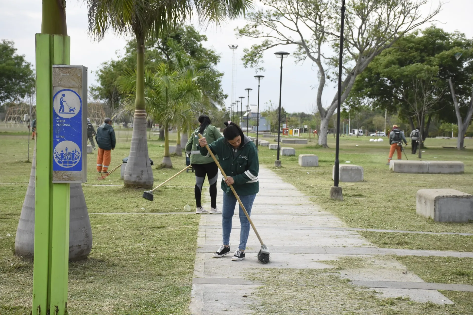 Trabajadores municipales tuvieron un frente de trabajo este martes en el Parque de la Democracia y sus alrededores. Se realizó el desmalezado, papeleo y levantamiento de residuos en general; algo que también se replica en los demás espacios verdes de toda la ciudad.Con 25 trabajadores y trabajadoras de la comuna, la intervención integral incluyó la limpieza de todo el sector comprendido por la avenida Sarmiento, desde el 1600 hacia la Autovía Nicolás Avellaneda; sector muy utilizado por los vecinos y vecinas.Así lo explicó el secretario de Servicios, Claudio Westtein, quien dijo: “Es una tarea muy importante, teniendo en cuenta lo amplio que es este espacio”.“Con la descentralización de los centros comunitarios, las delegaciones, más los asistentes ejecutivos y las distintas direcciones estamos haciendo un trabajo de abordaje integral de Resistencia y eso incluye a los espacios verdes”, remarcó.Además del personal afectado, este tipo de intervenciones incluye logística de mano y logística pesada para hacer un desmalezado, limpieza en general, barrido y levantar todo para que quede en condiciones.“Nosotros tenemos una planificación que incluye no sólo llegar a los distintos barrios, sino a los espacios verdes; tenemos personal que está trabajando en el Parque de La Democracia, en el Parque Tiro Federal, en las distintas plazas y plazoletas de la ciudad, con el objetivo de dejarlos en óptimas condiciones porque entendemos que es muy importante la actividad física y el esparcimiento”, sintetizó Westtein.