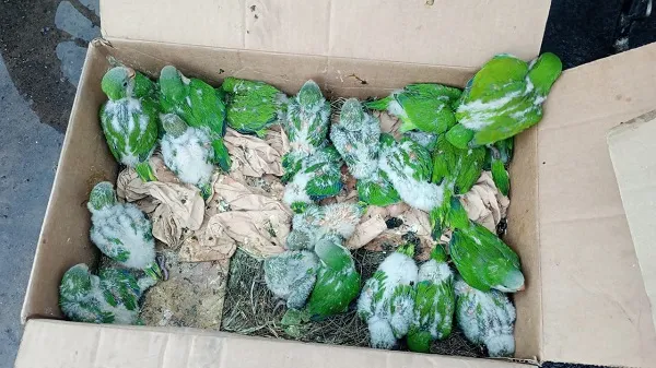 Esta transportaba dos cajas de cartón que contenían los 46 pichones de loro. De inmediato se procedió al secuestro de la totalidad de las aves, en el marco de la Supuesta infracción a la Ley de Caza Nº 1429-R.