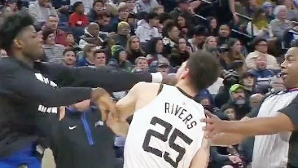 Rivers (1,93 metros) y Bamba (2,13) intercambiaron insultos, el pivote se levantó de su asiento y comenzaron a golpearse dentro del rectángulo de juego, mientras llegaban corriendo compañeros de ambos equipos y miembros de seguridad para separarlos.