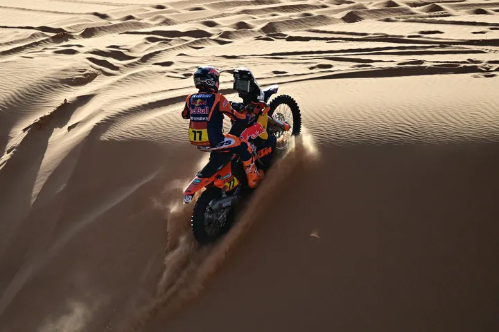 Luciano Benavides (KTM Factory Racing) logró este lunes su tercera victoria de etapa en la 48a edición del Rally Dakar, la segunda consecutiva para él, y pasó a liderar en motos con tan solo diez segundos de margen sobre su compañero de equipo, el australiano Daniel Sanders, que defiende el título y al que recortó casi cinco minutos en la octava jornada para arrebatarle el primer puesto.
