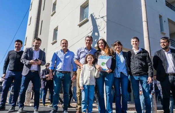 El nuevo edificio, que cuenta con 74 departamentos de dos y tres habitaciones y ocho locales comerciales, demandó una inversión de $1.266 millones. Este viernes se entregaron las llaves de 22 departamentos a las familias que fueron sorteadas en diciembre de 2022, los próximos meses se completarán los procesos administrativos para hacer las adjudicaciones que faltan.