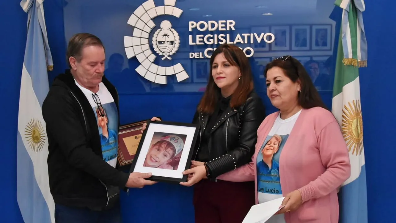 La legisladora Ayala expresó estar “muy conmovida, como legisladora y como mamá, ante este crimen tan atroz, con esta profunda violencia que sufrió Lucio con sus 5 años, que demuestra y visibiliza la violencia intrafamiliar, el abuso sexual intrafamiliar; la verdad que hoy es satisfactorio estar entregando, en representación de la presidenta Elida Cuesta, este homenaje a los abuelos Ramón y Silvia, junto con la ley que hemos aprobado el miércoles pasado, la que va en sintonía de redoblar los esfuerzos como en cada una de las iniciativas que presentamos e incentivamos en este Poder para protección de las niñas, niños y adolescentes”.