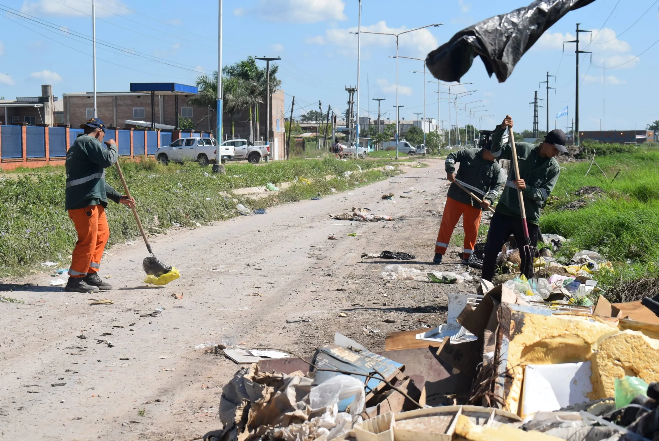 Cuadrillas de trabajadores de la Municipalidad de Resistencia que se encuentran abocadas al programa de saneamiento ambiental Resistencia Más Limpia desarrollaron su tarea en la zona de avenida Bogotá, entre Mac Lean y la Ruta 11.