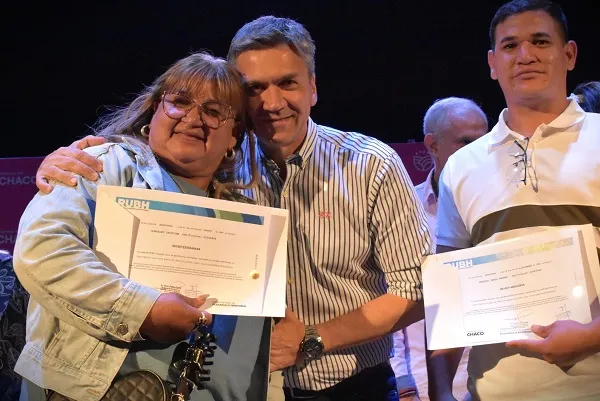Esta tarde, el gobernador Leandro Zdero, junto al intendente de Resistencia, Roy Nikisch, y la subsecretaria de Desarrollo Territorial, Alicia Ogara, entregaron 121 certificados del Registro Único de Beneficiarios del Hábitat (RUBH) a familias de más de 50 barrios de la capital chaqueña, en un acto realizado en el Auditorio de la Casa de las Culturas. “Estamos felices de compartir este pequeño paso que va a ser la formalización de su futuro hogar y su futura tierra”, expresó el gobernador Zdero, al celebrar el avance de un programa que busca dar seguridad y tranquilidad a los vecinos. El mandatario destacó el trabajo conjunto con el Municipio de Resistencia y con el Ministerio de Producción y Desarrollo Económico Sostenible, a través de la Subsecretaría de Desarrollo Territorial, para concretar estas gestiones en toda la provincia. “Estamos decididos a dar tranquilidad a la gente, y muchas veces esa tranquilidad comienza sabiendo que uno tiene su pedacito, su lugar para vivir, formar su familia y construir su casa”, sostuvo.