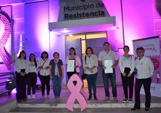 Con el objetivo de concientizar sobre la importancia de la detección temprana del cáncer de mama, el gobierno de Resistencia y el equipo del programa “Tomatelo a Pecho”, iluminó de color rosa la fachada del edificio municipal, conmemorando el 19 de octubre, Día Internacional de la lucha contra esta enfermedad.