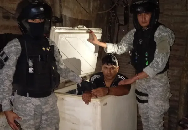 Durante el rastrillaje, el personal policial localizó un rancho precario y observó que el evadido intentaba ocultarse dentro de un freezer en desuso, por lo que se procedió a su inmediata extracción y aprehensión, adoptando las medidas de seguridad correspondientes.