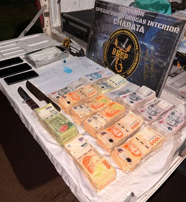 En el procedimiento secuestraron un paquete con 1.033 gramos de cocaína, tres teléfonos celulares, $5.486.850 en efectivo, dos cuchillos y un automóvil Volkswagen Vento.