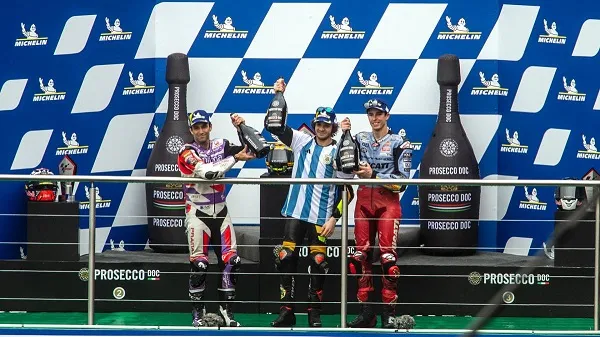 El italiano Marco Bezzecchi (Ducati) logró un triunfo bautismal en el MotoGP, al imponerse este domingo bajo la lluvia en el Gran Premio República de Argentina, disputado en el circuito internacional de Termas de Río Hondo en Santiago del Estero.