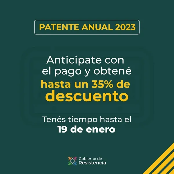 Este jueves 19 de enero finaliza el plazo para que los contribuyentes puedan optar por el pago anual anticipado de patente. Así fue informado desde la Municipalidad de Resistencia; desde donde se había fijado un beneficio especial para quienes vengan realizando sus pagos anticipados en los últimos tres años.