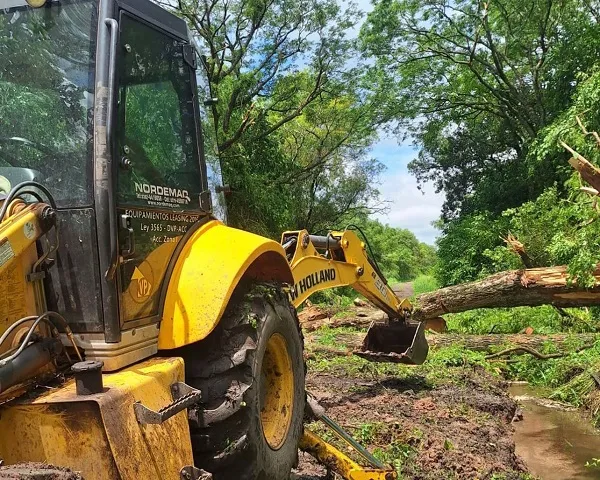 Se encuentran trabajando en la remoción de árboles, ramas y postes caídos, así como también en el despeje de accesos principales y caminos vecinales para reestablecer la circulación y facilitar el ingreso de los servicios esenciales.